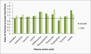 WGMF is made according to CODEX standards and does not contain added whey. The analysis of blood amino acid levels in 4-month-old infants demonstrated that the WGMF delivered the required amounts of essential and semi-essential amino acids.