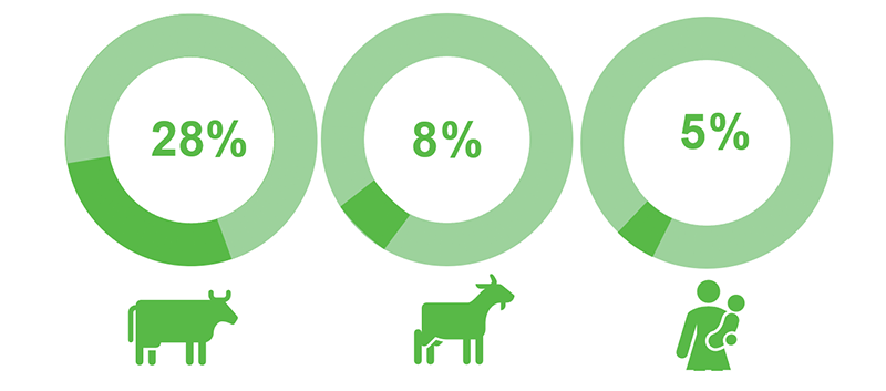 | Milk fat | 100% | ~50% | <5% | <5% |