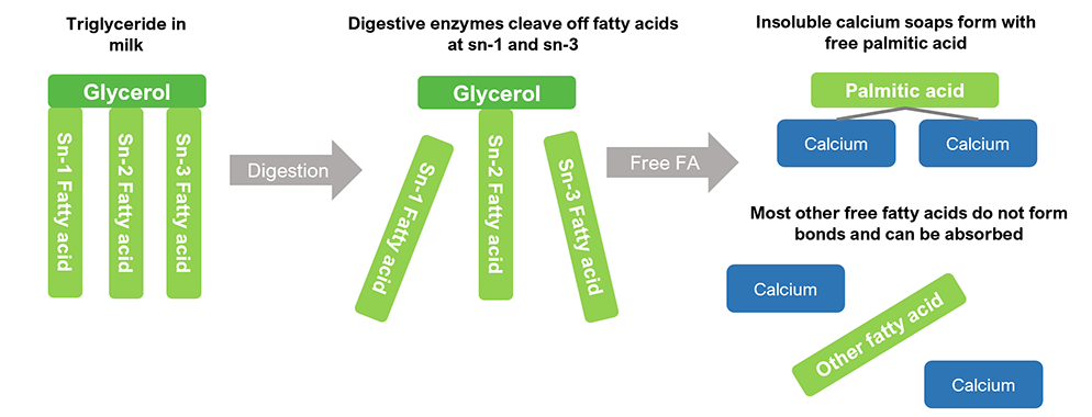 | sn-2 palmitic acid | ~70% | ~30% | ~5%** | ~5%** |